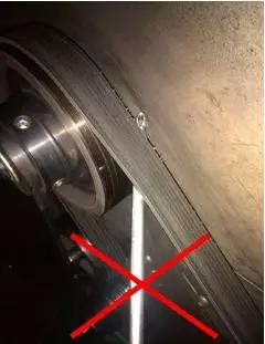 正確操作:皮帶安裝完成后,沿皮帶摸一圈,防止皮帶安裝錯位