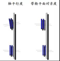 后果:帶輪不共面分軸不共面及帶輪平面不共面,兩種不共面情況均會加快皮帶磨損,甚至引起皮帶骨架線繩抽出