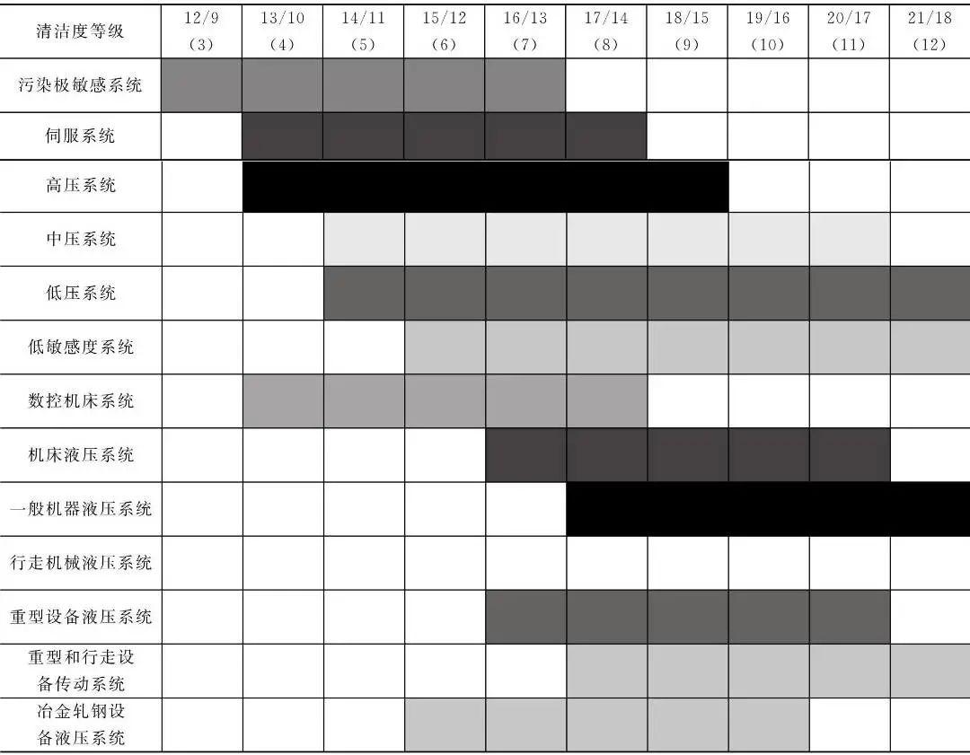 表4 典型液壓系統(tǒng)清潔度等級(jí)