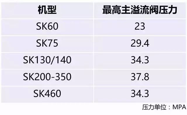 ▊主溢流閥壓力是否正常,可以使用壓力計(jì)測定主溢流閥的調(diào)定壓力,以下是神鋼系列機(jī)型主溢流閥壓力的最高壓力值: