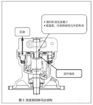 按照以上方法改進滾針軸承潤滑方式后,市場驗證結果表明,回轉馬達耐用性能得到了大幅度提高,相關挖掘機再未出現(xiàn)滾針軸承損壞故障。