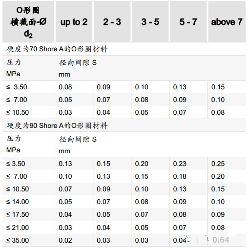 了可允許間隙的建議,表中數(shù)據(jù)來(lái)源于特瑞堡密封。它是一個(gè)關(guān)于
