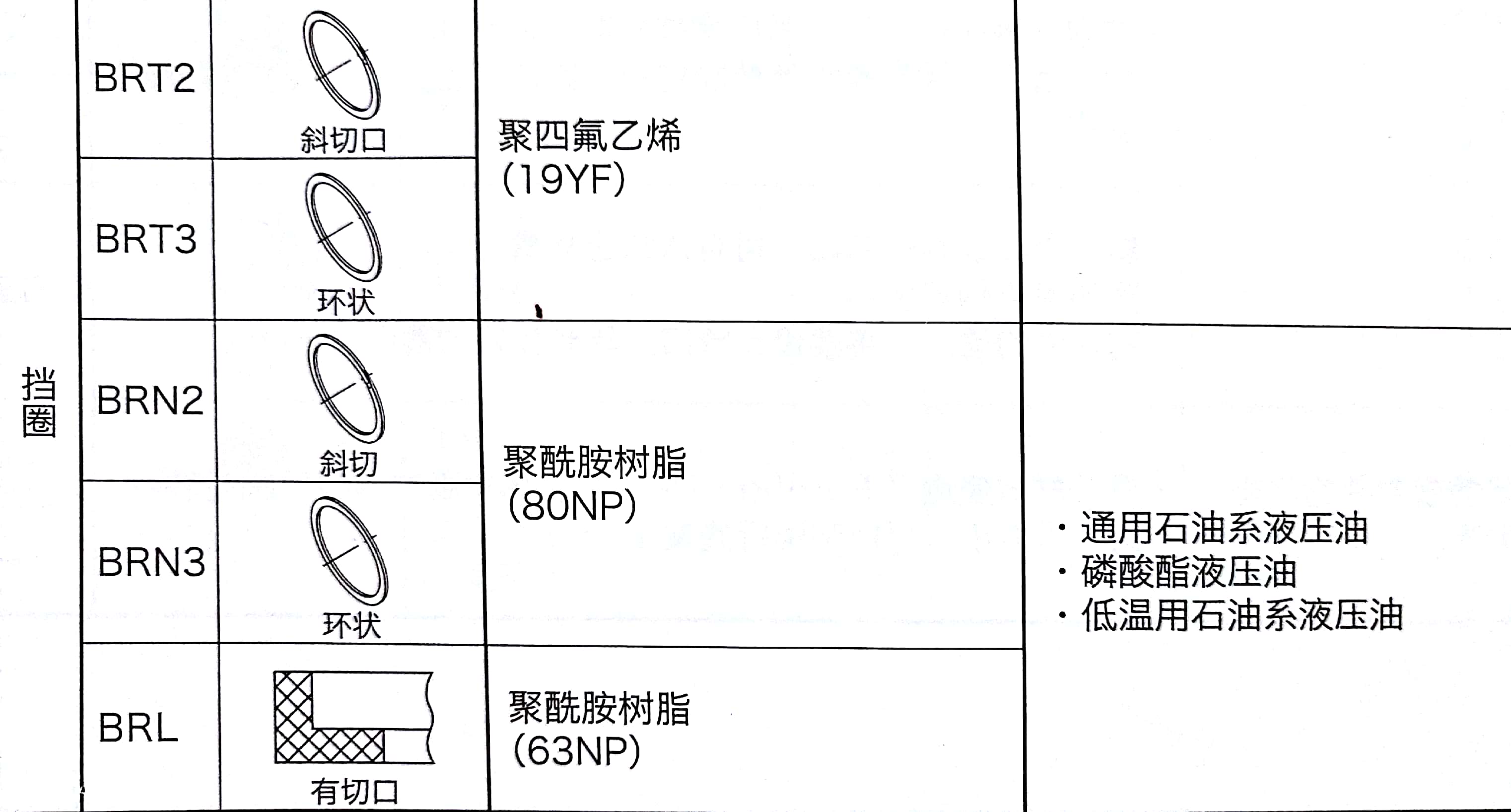 根據(jù)上表可以看出ODI、OSI、OUIS、UPI、USI、IDI、ISI、IUIS、UNI有配套的聚四氟乙烯樹脂和聚酰胺樹脂擋圈可供選擇。
