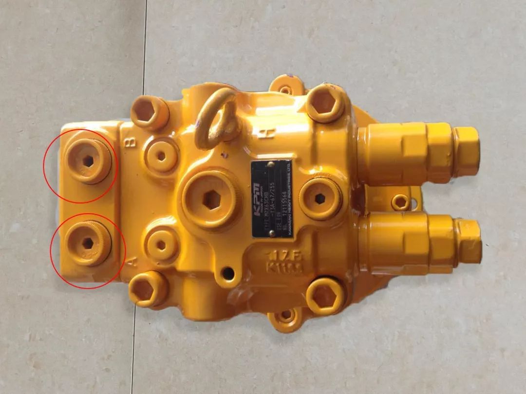 1、先檢查一下回轉(zhuǎn)馬達(dá)上的安全溢流閥。
