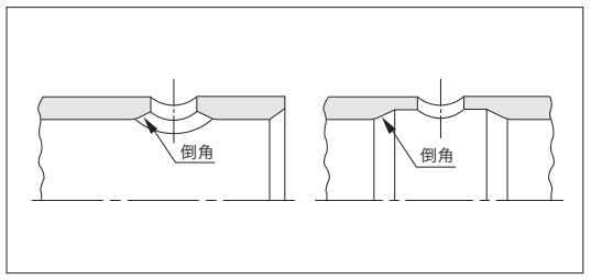 唇部直接通過油壓孔,請用一根圓棒(樹脂)輕輕推唇部。這樣可以防止孔的倒角部分損傷密封件的唇部。在缸筒上直接鉆油壓孔時,請如下圖所示,做出倒角。