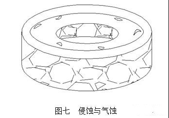 7.流體的浸蝕和氣蝕(見圖七)密封件的內(nèi)外圓表面、背端面出現(xiàn)凹坑麻點,這是因高速流體長期沖擊的結(jié)果。就流體浸蝕來說,破壞是由于小滴液強烈的壓縮脈沖傳到材料表面引起周圍面積強大的剪切變形,這種變形反復(fù)進行,就能引起疲勞破壞型麻點。氣蝕是由于流體流動連續(xù)性被破壞,在高速運動或振動的表面接觸中形成的蒸汽泡或氣泡的破滅所引起的沖擊而產(chǎn)生的。