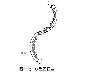 17.O型圈扭曲(圖十七)橡膠O型圈的扭曲現(xiàn)象大多發(fā)生在密封距形安裝槽的結(jié)構(gòu)上,當O型圈的斷面粗細不勻,或組合軸孔表面不光潔以及壓縮率過大時,都會引起O型圈扭曲。
