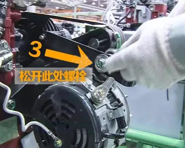 第二步:旋松調(diào)整螺栓,將發(fā)電機(jī)皮帶調(diào)整為規(guī)定的松緊度后,擰緊安裝螺母和調(diào)整螺母。