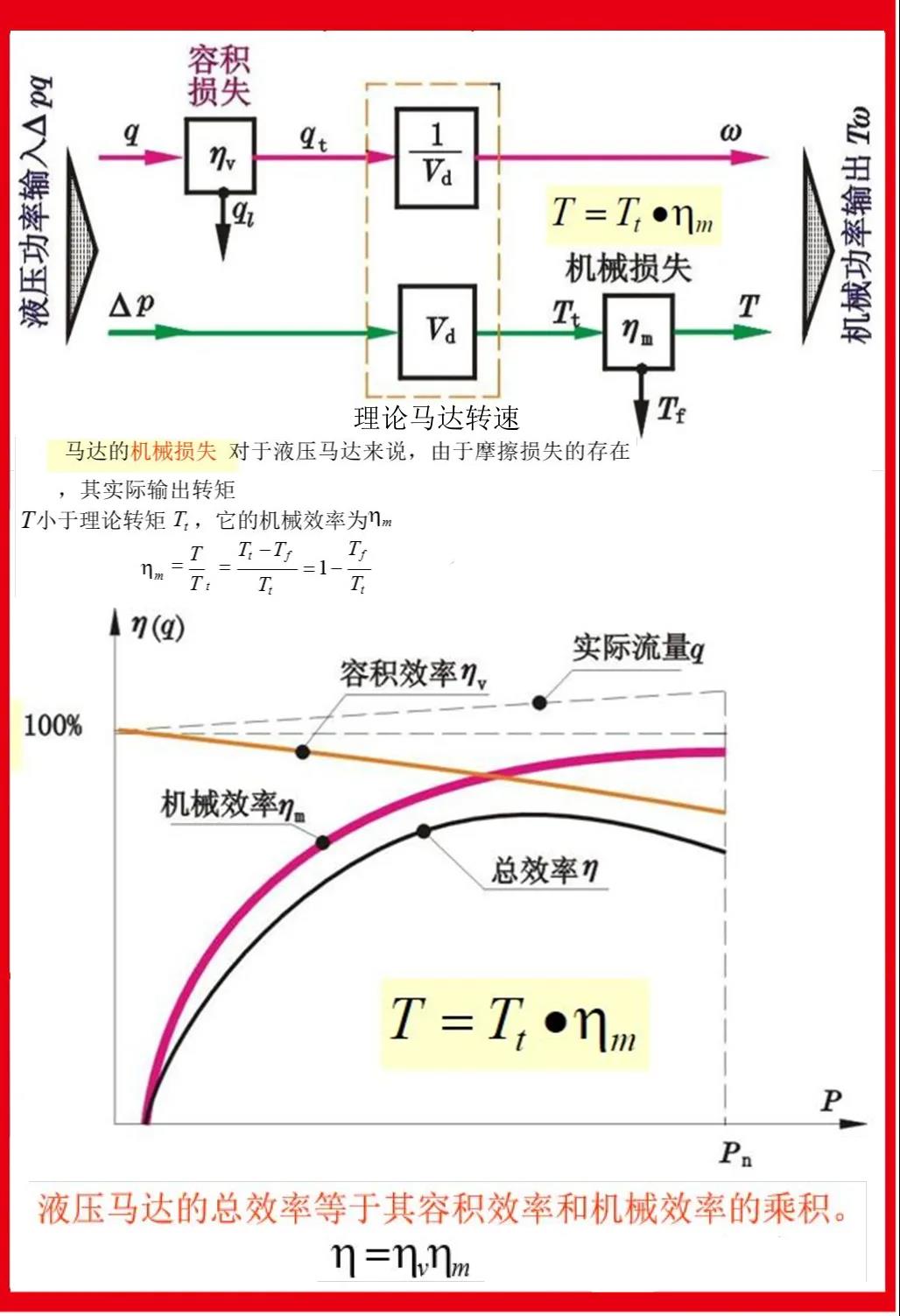 液壓泵、馬達(dá)的能量傳遞關(guān)系見(jiàn)下圖。容積效率和機(jī)械效率在總體上與油液的泄漏和摩擦副的摩擦損失有關(guān)。