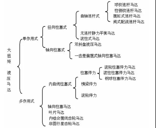 大扭矩液壓馬達(dá)根據(jù)每轉(zhuǎn)中工作副中的作用次數(shù),可大致分為單作用式和多作用式。具體分類可參照?qǐng)D1所示
