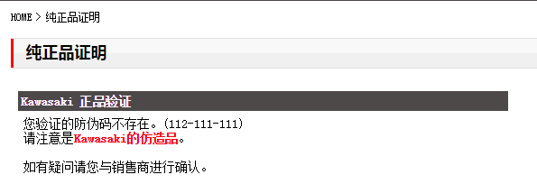 望廣大用戶提高警惕,在購(gòu)買川崎純正品時(shí),積極刮開(kāi)涂層防偽碼,在川崎官方網(wǎng)站上進(jìn)行純正件驗(yàn)證,還需仔細(xì)留意包裝袋是否有再利用痕跡。